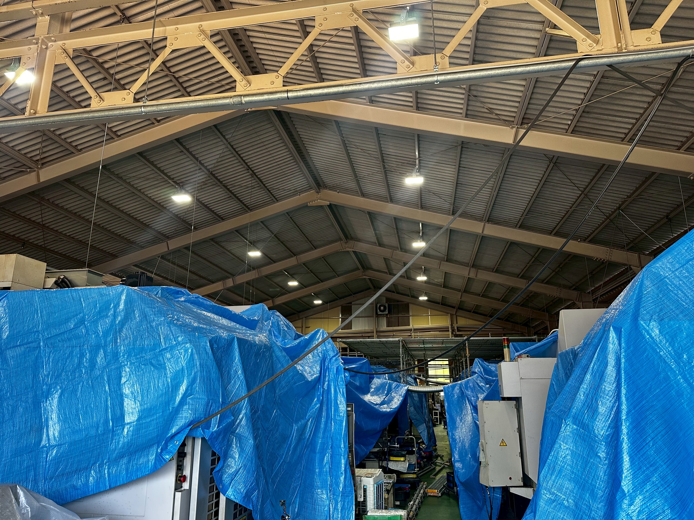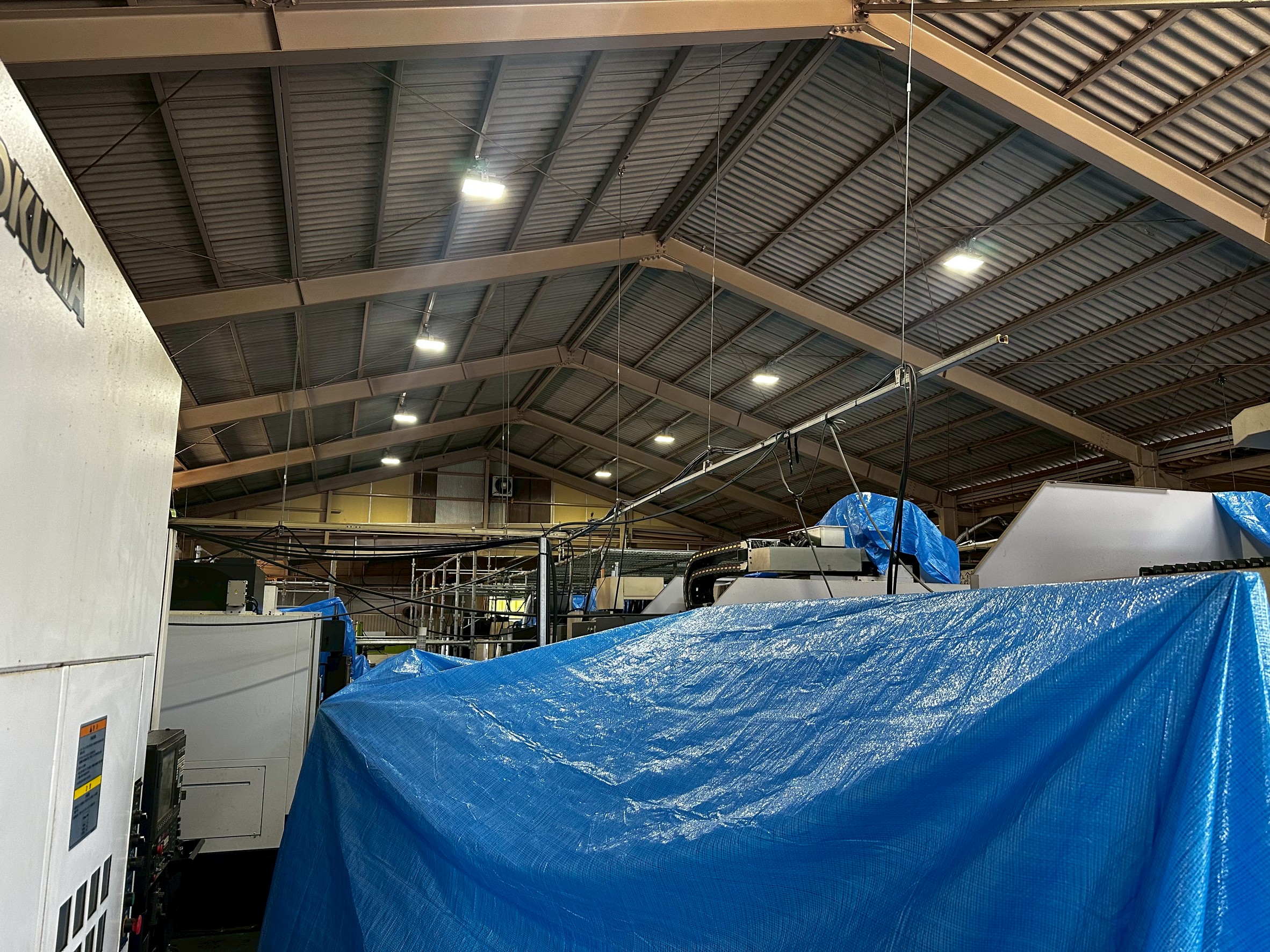詳細:愛知県内の某工場にて、天井新設工事一式及びその他付帯一式工事を行いました。空調効果向上の為に、防災設備工事、工作機械の排煙ダクト新設工事を行いました。