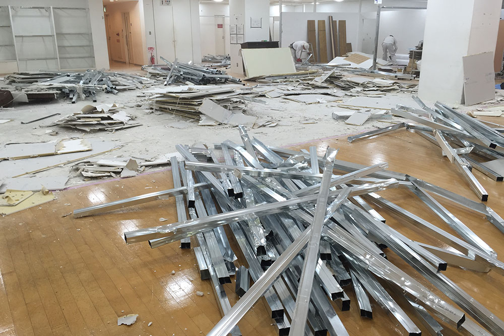 オフィスや飲食店など、さまざまな現場に対応可能です。テナント物件の契約満了時や退去時、改装やレイアウト変更にともなう解体など、お困りの際はお気軽にご連絡ください。